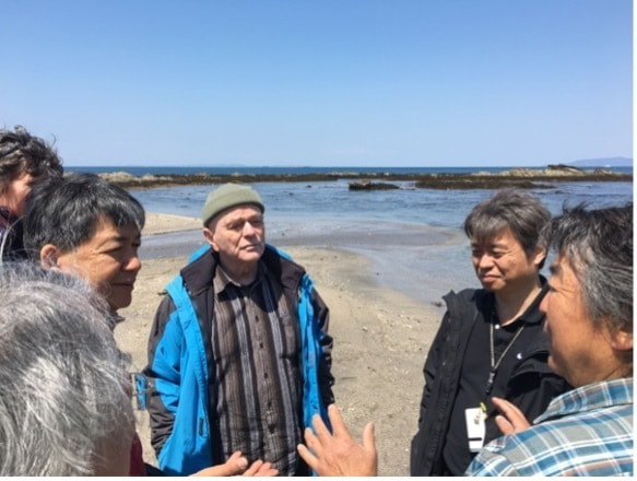 その後、館山の海岸へ向かいシークロップ(ジャックマイヨールの通ったダイビングショップ)のダイバーである成田均氏の協力を得、ドモッホ氏の指導の元に、海に浮かび、海の波に身を任せる療法を指導してくれた。